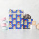 This awesome patterned Christmas wrapping paper features a digital art image of a cute Christmas Siamese Cat with beautiful blue eyes, brown claws, ears and whiskers and its front paws raised in the air. The cat is wearing a red collar with pretty white snowflakes on it and a beautiful golden bell. The cat is wearing a warm red bobble hat with white snowflakes on it to keep it warm in the winter cold.