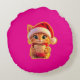 **Cute Christmas Cat with Santa Hat – Funny Holida Round Cushion