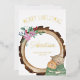 Personalised christmas card with luxury gold foil typography. This design is lettered with Merry Christmas followed by your personalised text which is framed with a rustic wood tree slice, christmas flower bouquet and two cute kitten cats in holiday sweaters.