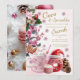 This invitation features a whimsical, cozy theme with a soft, pastel pink palette to capture the festive warmth of Christmas and the sweet anticipation of a baby on the way. A charming illustration of a hot cocoa cup takes center stage, topped with whipped cream, pink sprinkles, and a candy cane. Next to the cup is a pink-frosted donut adorned with festive holiday sprinkles, adding a touch of sweetness and playfulness. Beside it, a delicate pink macaron completes the dessert trio, adding an elegant touch to the treat-filled display, Easy Editable Template.