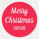 Cute Christmas Custom Kids Name Typography Red Classic Round Sticker