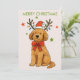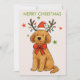 Featuring a sweet watercolor-style dog wearing a Santa hat, reindeer antlers, colorful string lights, and a big red bow, this design is perfect for sending warm wishes to family, friends, coworkers, or dog lovers.
