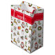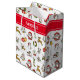 Wrap your gift in a custom Christmas gift bag. This cute bag is sprinkled with hand-drawn Christmas doodles. A red nameplate offers a chance to personalise for a special someone.