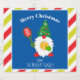 Cute Christmas Dwarf with tennis ball. Blue background, customisable text