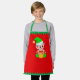 Cute Christmas Elf and Green Stripes on Red Apron