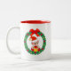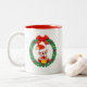 Cute Christmas Elf & Christmas Wreath Two-Tone Coffee Mug