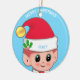 Cute Christmas Elf & Custom Name on Light Blue Ceramic Tree Decoration