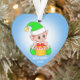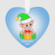 Cute Christmas elf, custom name on light blue Heart Ornament.
