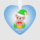 Cute Christmas Elf, Custom Name on Light Blue Ornament