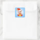 Cute Christmas Elf & Custom Text on Light Blue Square Sticker