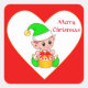 Cute Christmas Elf & Gift Box on Red & White Square Sticker