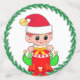 Modern cute Christmas elf and golden green and red Christmas balls Table Confetti. Text can be personalised!