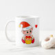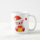 Cute Christmas elf holding a gift box and heart on white background Mug. Enjoy the most wonderful and magical time of the Year! Little elves are believed to be earth angels.