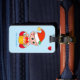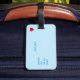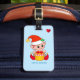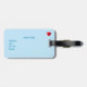 Cute Christmas elf holding a gift box and red heart on light turquoise blue Luggage Tag. All texts ready to be personalised.