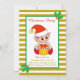 Cute Christmas Elf on Golden & White Invitation