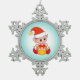 Cute Christmas Elf on Teal Blue Snowflake Pewter Christmas Ornament