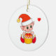 Cute Christmas elf holding a gift box on white Ceramic Ornament.