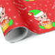 Cute Christmas Elf & Snowflakes on Red Wrapping Paper