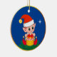 Cute Christmas elf & star on blue Ceramic Tree Decoration