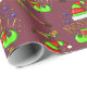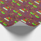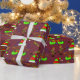 A cute pattern of Christmas elves with giant green and red Christmas hats and elf shoes, blue snowflakes and gold stars, on a plum coloured background. This elf wrapping paper would certainly add a festive finishing touch to your gift wrapping these Christmas holidays.