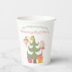 These custom paper cups feature a cute, pastel winter holiday theme. An image of a whimsical Christmas tree is pictured at the bottom, with two little fairies flying around it. A beautifully wrapped present is pictured beneath each fairy. A sample Christmas Craft Party event is printed at the top, along with a family name. You can personalise the cups to include your own custom name or text.
