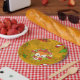 A cute cartoon fox sitting in a Christmas wreath, surrounded by holly and candy canes to add a touch of adorable whimsy to your Christmas this year.