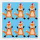 This awesome patterned wallpaper features a digital art image of a cute Christmas Fox. The fox is orange with white with a bushy tail, black whiskers and a black nose. It also has beautiful yellow eyes. and is wearing a red and white Santa hat on its head.