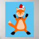 This awesome poster features a digital art image of a cute Christmas Fox. The fox is orange with white with a bushy tail, black whiskers and a black nose. It also has beautiful yellow eyes. and is wearing a red and white Santa hat on its head.