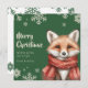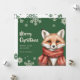 The design features a sweet Fox in a red knitted scarf, set against a festive green background with delicate snowflakes.