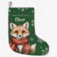 Bring woodland magic to your holiday mantel with this personalised Christmas stocking featuring an adorable fox with a cosy scarf.