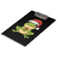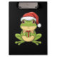 Cute Christmas Frog with Santa Hat Holding Gift - Clipboard
