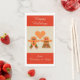This awesome pack of paper napkins features a graphic image of a cute gingerbread couple. The gingerbread man has green and red buttons and green and red fringed trousers. The gingerbread lady has pretty eyelashes and wears red lipstick. She has a green and red fringed skirt and top on. Both have a big smile. There is a gingerbread heart above the couple showing their love for each other. There is white writing inside the heart that says "made for eachother". This would make a lovely gift for a couple at Christmas.
