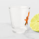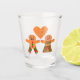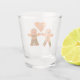 This awesome shot glass features a graphic image of a cute gingerbread couple. The gingerbread man has green and red buttons and green and red fringed trousers. The gingerbread lady has pretty eyelashes and wears red lipstick. She has a green and red fringed skirt and top on. Both have a big smile. There is a gingerbread heart above the couple showing their love for each other. There is white writing inside the heart that says "made for eachother". This would make a lovely gift for a couple at Christmas.