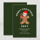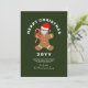 Add some modern simplicity to your holiday greetings with this Cute Gingerbread Script Name Christmas Card. It is a modern simple design with a cute gingerbread man wearing a Covid-19 face mask and red Santa Claus hat on customisable emerald green background. He has a candy cane in his hand and the greeting is "Merry Christmas" with custom year Personalised with family signature name in trendy hand writing script across the lower front. You can customise the greeting to anything you like or leave as shown.