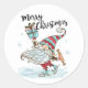 Cute Christmas Gnome Ice Skating Classic Round Sticker