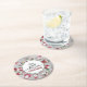 "Cute Christmas Gnomes Santa Hats Holly Red Grey Round Paper Coaster." Adorable, watercolor painted gnomes and elves in Santa hats with inspirational Christmas text typography adorn these paper coasters along with your personalised name or message. Art created by internationally licensed artist and designer, Audrey Jeanne Roberts, copyright.