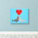 This awesome canvas print features a pair of romantic seals kissing. One seal is light grey and the other is dark grey. The light grey one is wearing a green scarf and hat and the dark grey seal is wearing a red scarf and hat. Above the seals is a pair of red and white candy canes in the shape of a heart, surrounding a red heart with white text inside that says "Sealed with a Christmas kiss. A lovely design for Christmas and for couples spending their first Christmas together.