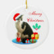 Cute Christmas Merlin cat ornament. Carol cat near gifts and a little angel wishing a Merry Christmas. Text can be personalised.