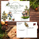 A postcard invitation for a Christmas Open House features watercolor depictions of fully-clothed mice decorating a mouse-sized tree with a cheese star, seeds and nuts while another mouse sits in the shell of a walnut, with an open book. His seat is backed by an evergreen sprig. But house mouses are everywhere and one is climbing on the "C" in "Christmas Open House". He's wearing a yellow shirt and fluffy green pantaloons from which his tail dangles. It is simple to substitute your event details for our placeholders. Just click "Personalise" and get started. The back features the usual postcard format with your return address, a personal message and "Kindly Deliver To:" in the same fonts. In the centre is a (small) watercolor scene of two mice sledding in the snow. Two contrasting playful fonts (in black) have been selected for this fun Christmas Party Invitation.