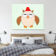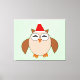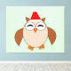 This awesome canvas print features a funny cartoon of a Christmas owl with sleepy eyes, a small orange beak and cute little orange feet. The owl is brown with a cream belly and is wearing a red and white Santa hat ready for Christmas.