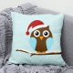 These beautiful throw pillow features an adorable vector illustration of a brown and blue owl wearing a Santa Claus hat perched on a tree branch on a snowy background. Perfect to decorate any room for the winter holidays!