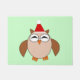 This awesome doormat features a funny cartoon of a Christmas owl with sleepy eyes, a small orange beak and cute little orange feet. The owl is brown with a cream belly and is wearing a red and white Santa hat ready for Christmas.