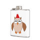 This awesome flask features a funny cartoon of a Christmas owl with sleepy eyes, a small orange beak and cute little orange feet. The owl is brown with a cream belly and is wearing a red and white Santa hat ready for Christmas.