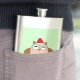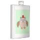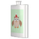 This awesome flask features a funny cartoon of a Christmas owl with sleepy eyes, a small orange beak and cute little orange feet. The owl is brown with a cream belly and is wearing a red and white Santa hat ready for Christmas.