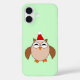 This awesome iPhone case features a funny cartoon of a Christmas owl with sleepy eyes, a small orange beak and cute little orange feet. The owl is brown with a cream belly and is wearing a red and white Santa hat ready for Christmas.