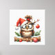 Cute Christmas Owl wearing a santa hat Canvas Print