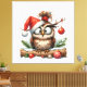 Cute Christmas Owl wearing a Santa hat Canvas Print