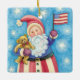 Cute Christmas, Patriotic Santa Claus with Flag Ceramic Ornament