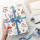 Christmas Pattern with cute owls, candy, deer, mistletoe, angel and Christmas tree.
