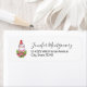 Address labels with a cute and whimisical design featuring an adorable penguin wearing a red santa hat. Standing behind a bouquet of flowers with pink and white striped candy canes.